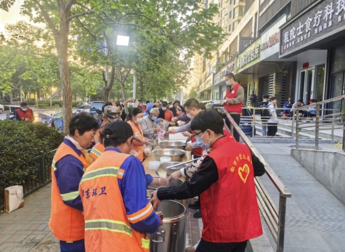 4月24日凌晨5點,晨曦微露,在鄭州市金水區(qū)東風(fēng)路愛心粥屋,來自鄭州城發(fā)集團(tuán)的50多名志愿者,大家身穿“紅馬甲”,早早來到這里,開展愛心志愿活動。
