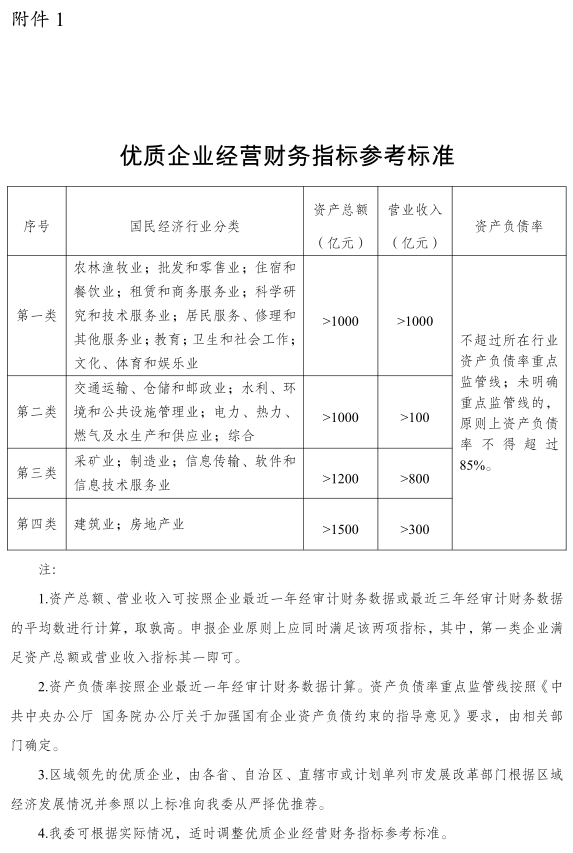 附件:1.優(yōu)質企業(yè)經營財務指標參考標準