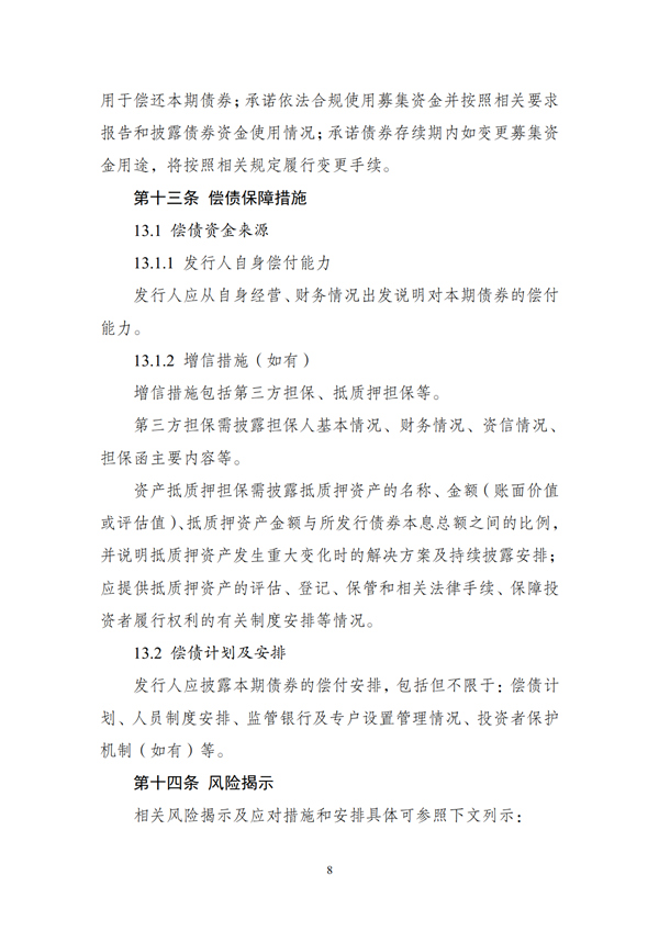 五、各期債券發(fā)行前,發(fā)行人應公開披露募集資金擬投資的項目清單和償債保障措施。